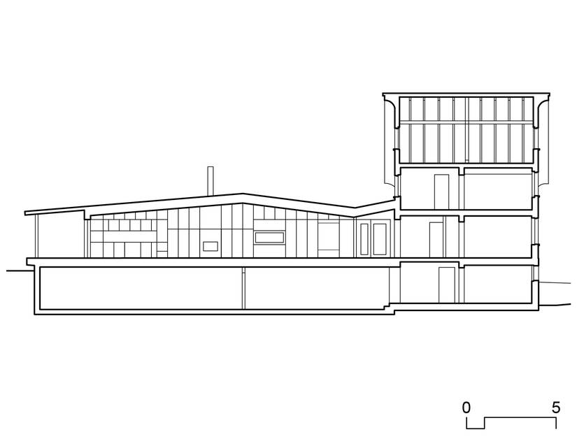 Der Anbau des „Stöckli“ an das Haus der Tochter haben wir als eingeschossigen Holzbau auf einen Betonsockel gestellt. Der angehobene Boden, aussen ablesbar, schliesst schwellenlos an das Hochparterre des Bestandes an – er scheint durch die umlaufende Schattenfuge über dem Erdreich zu schweben. Ein gemeinsames Entrée erschliesst von Norden her beide Wohnungen an der Schnittstelle zum Altbau.